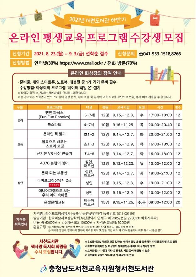 α û ͳ(https://www.cnall.or.kr) 30%, ȭ湮 70% ް , α ڼ (https://sclib.cne.go.kr) Ǵ ( 041-953-1518, 8266)ϸ ȳ ִ.