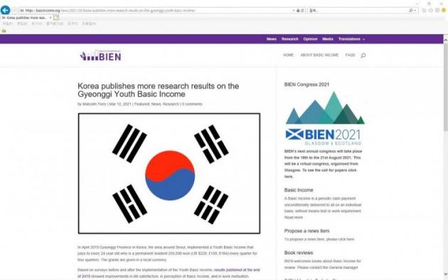 19 BIEN 3 12 'ѱ, û⺻ҵ濡 ǥ(Korea publishes more research results on the Gyeonggi Youth Basic Income)' 縦 ϰ "2019 4 24 û 4б б⸶ 25(ȭ 220, 158Ŀ, 184) ȭ ϴ û⺻ҵ ߴ" Ұߴ.